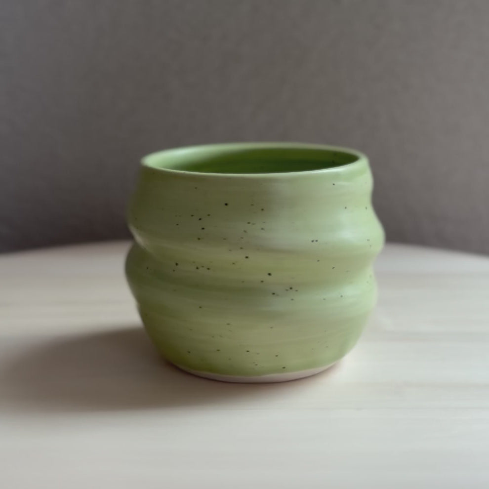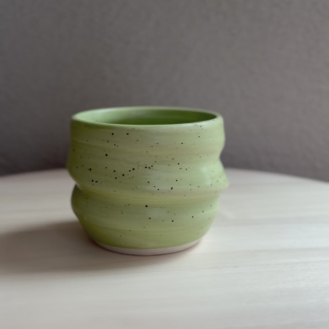 螺旋設計順著杯身旋轉,讓每個角度皆擁有獨一無二的姿態。隨指尖延伸的線條,在視覺流動之餘,更溫柔地貼合手心,轉化為指尖下的安定感。